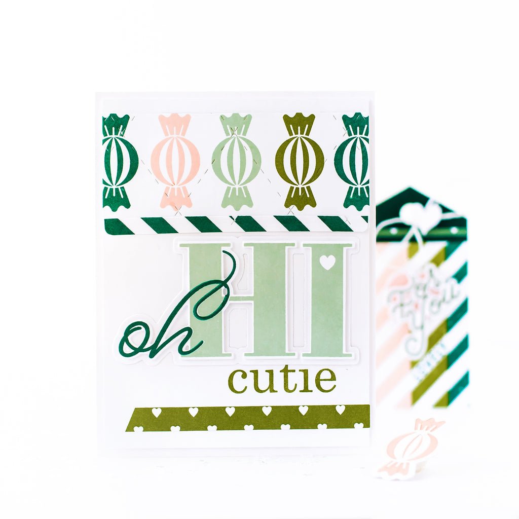 Packed with sweetness, this cute set not only delivers adorable candy designs and accents, but also goes the extra mile! We love using the striped candy to make striped backgrounds for tags or accent strips.