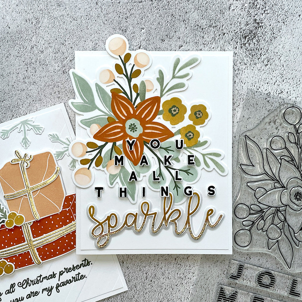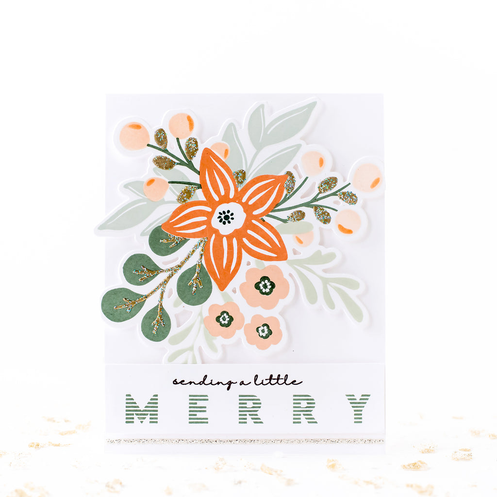 Coordinates with our Christmas Bouquet Outline stamp and Christmas Bouquet stamp + stencil bundle.