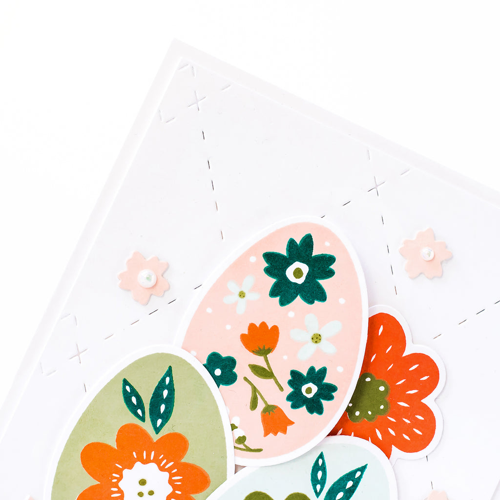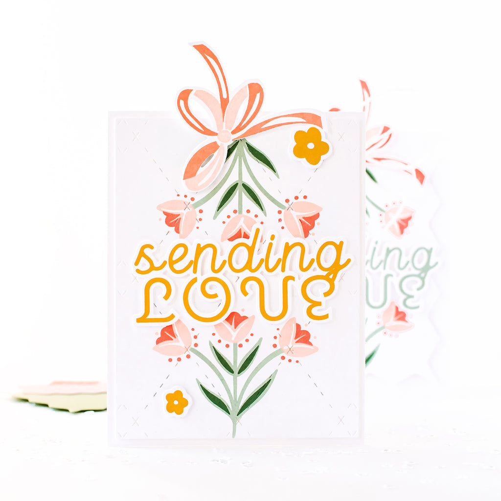 Say hi to brand new cover plate designs that etch dashed diamonds for subtle, yet beautiful background. We love using this design alone, or overtop a stamped background! This die includes an outer cut, which means it will cut a perfectly sized card front that leaves a little border around your A2 card base!