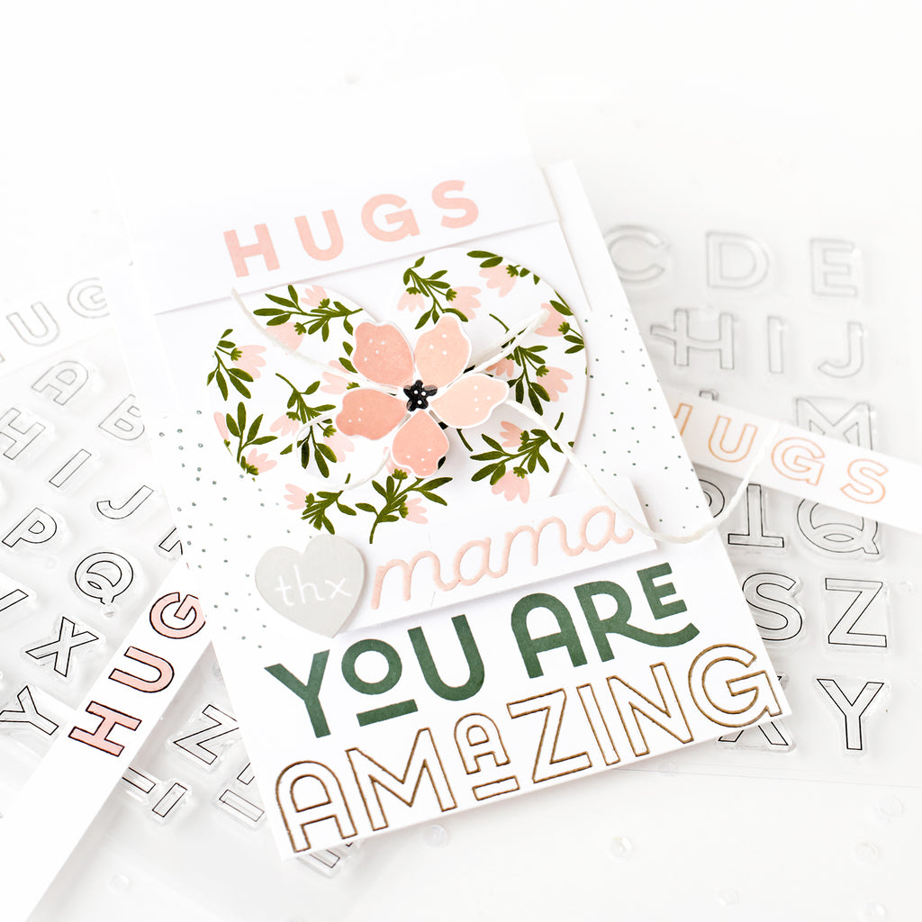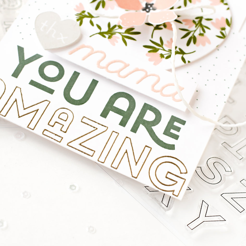 An outline addition to the Dashing Fonts family. Perfect for heat-embossing, watercoloring, or trendy outline lettering. If you've already invested in the Dashing Font stamp and die sets, these will integrate seamlessly.