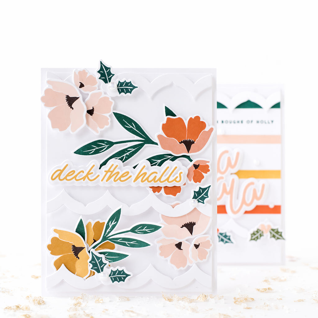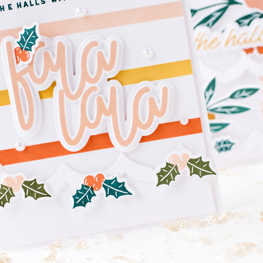 With so many fun, cheery sentiments, we think this might be our new go-to! The coordinating die set gives these stamps a new spin, with shadow elements and cutouts for the tiny berries and holly leaves.