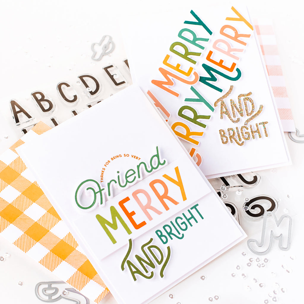 Coordinates with our Festive Fonts stamp and includes dies for the 9 accent letters to add a little frill.