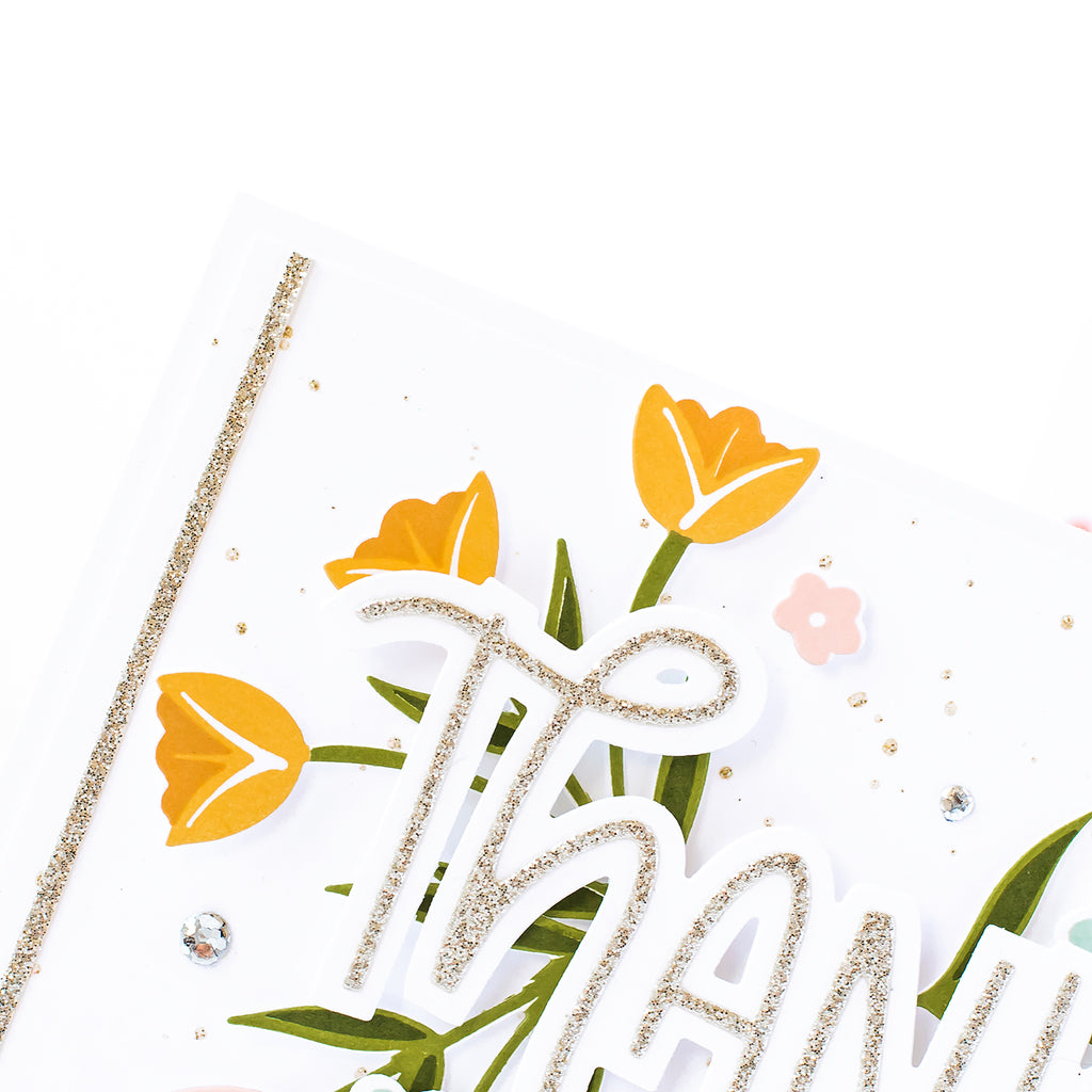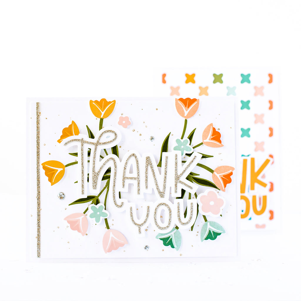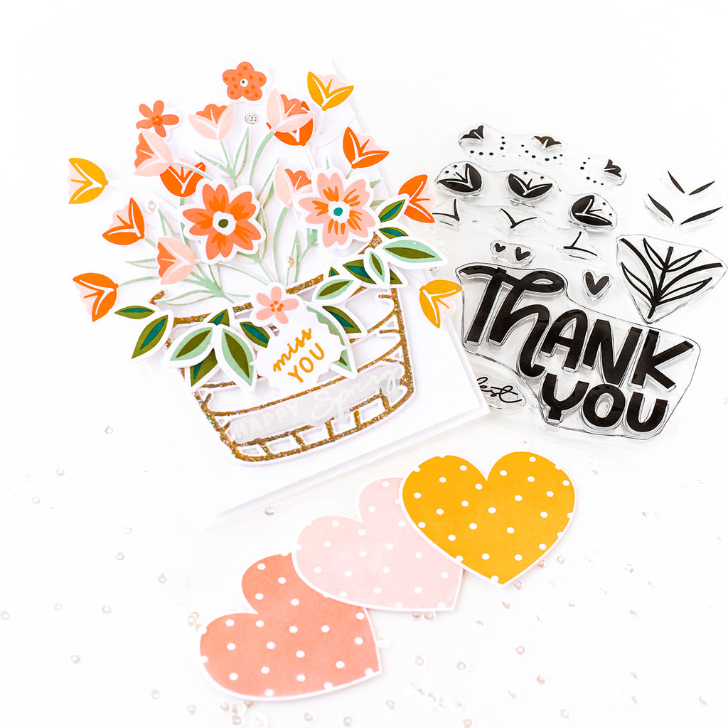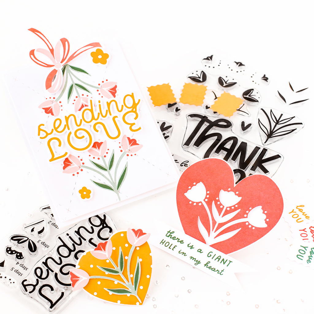 Easily build a stunning layered sentiment, cut a floral design, or a negative with these whimsical dies! This die set works overtime, and can be used alone or with the three coordinating stamps: Printed Hearts, Hole in My Heart and Hole In My Heart Fillers.