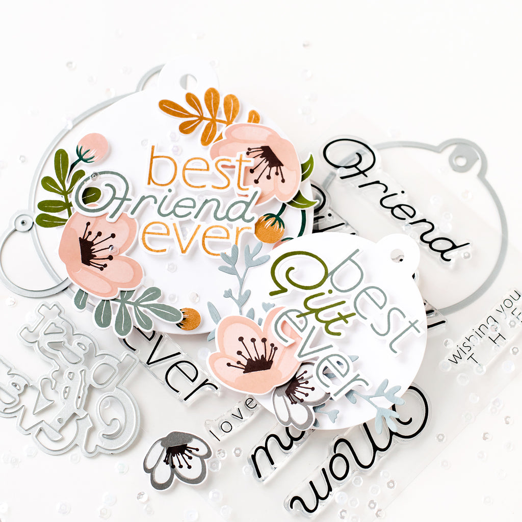 We love a good tag. And these round tags are just the perfect way to add a classic, yet versatile base to your projects. They coordinate perfectly with our Delicate Floral Shadow stamps, and work for all types of projects - from mini albums to snazzying up that perfect prezzie.