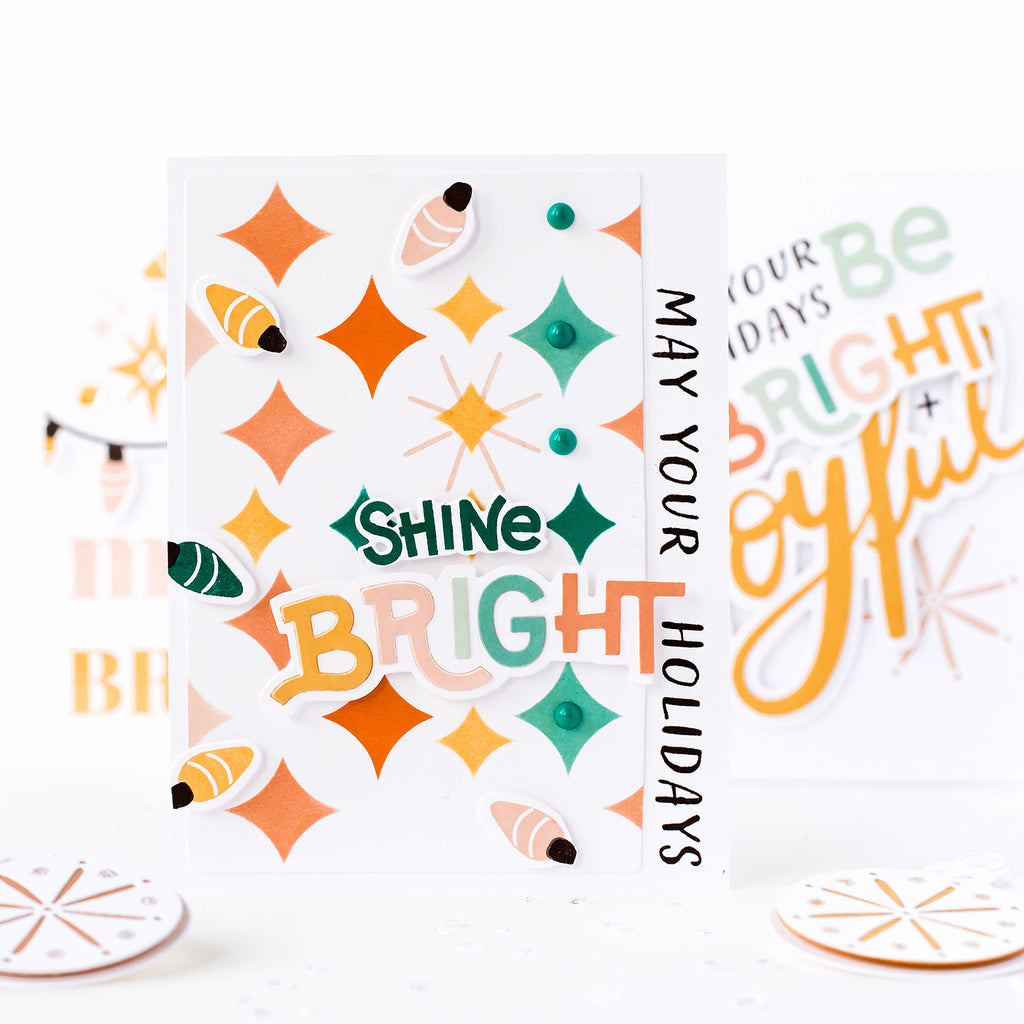 What makes your Holidays shine? Decking the tree? Sparkling lights? Spending it with that someone special? Whatever it may be, this fun set captures it all! Can be used to build ornaments, light strings, and it even stretches beyond the Holidays, with greetings and accents that make it easy to send a little sparkle any time of year!