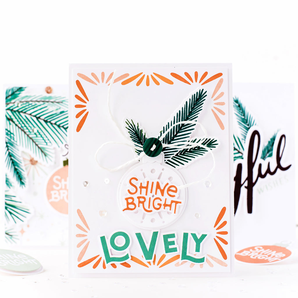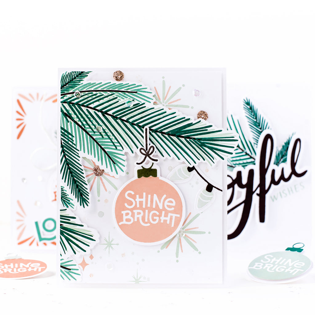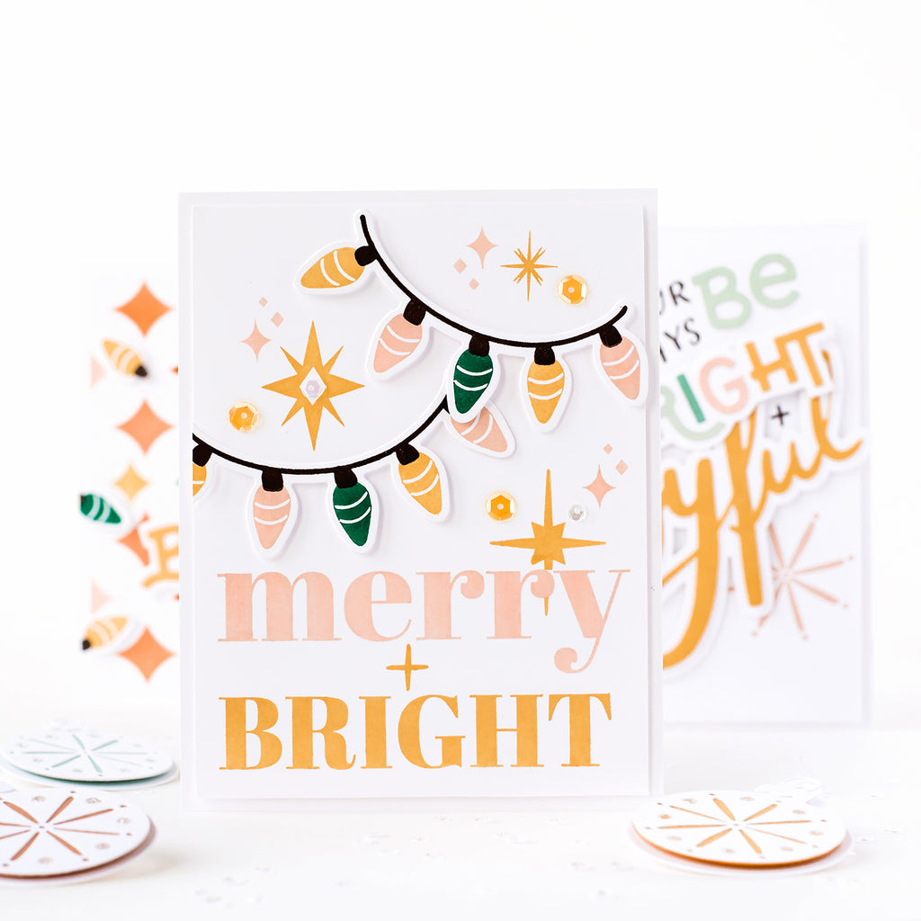Coordinates with our Shine Bright stamp set and cuts the words: 'Shine Bright' in two sizes, and includes two alternate endings: 'er' and 'en' for extra versatility that can be added to the word 'Bright'! All versions also include a shadow layer ;)