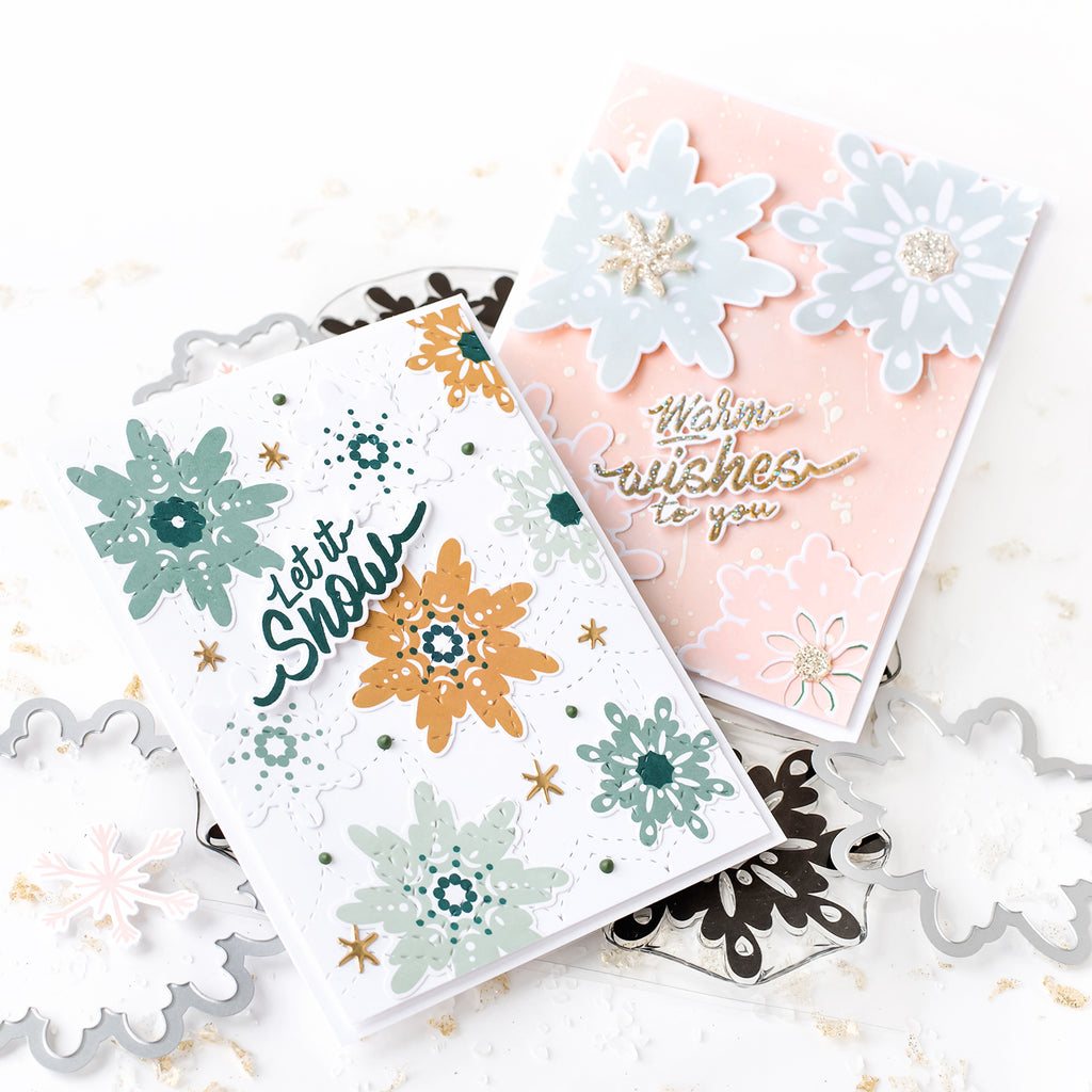 Coordinates with our Whimsy Snowflakes and Whimsy Snowflake Fillers stamp. Cut each snowflake with the outer cut, or combine with the inner cut for even more fun! Please note: the only stamped snowflake that does not have a coordinating die is the smallest flake in the bottom right corner of the stamp set.