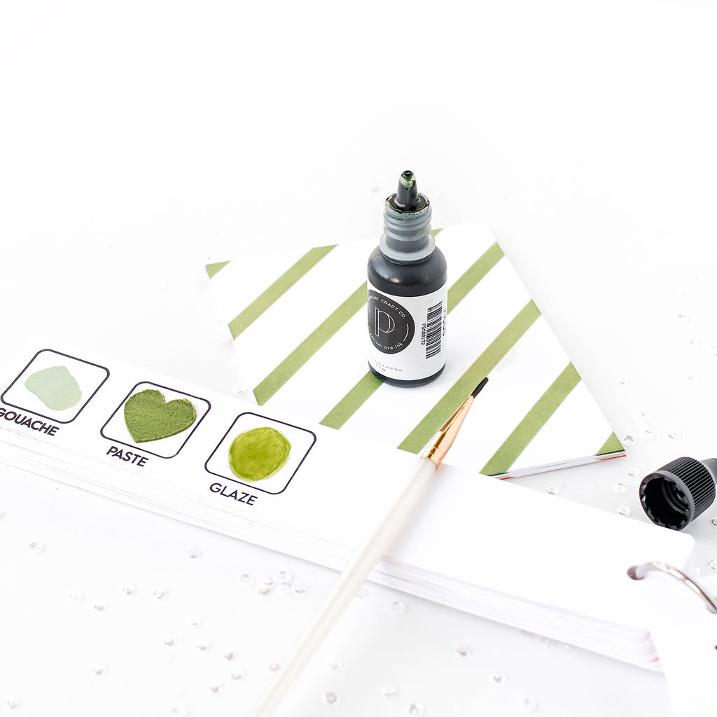 A medium-toned warm green, that looks STUNNING with our new lineup of ink. It adds just the perfect touch of warmth to the cool teals and pinks, and is a perfect hue for both Winter proejcts as well as Summery and Springtime creations. This is definitely a staple hue we can't get enough of.