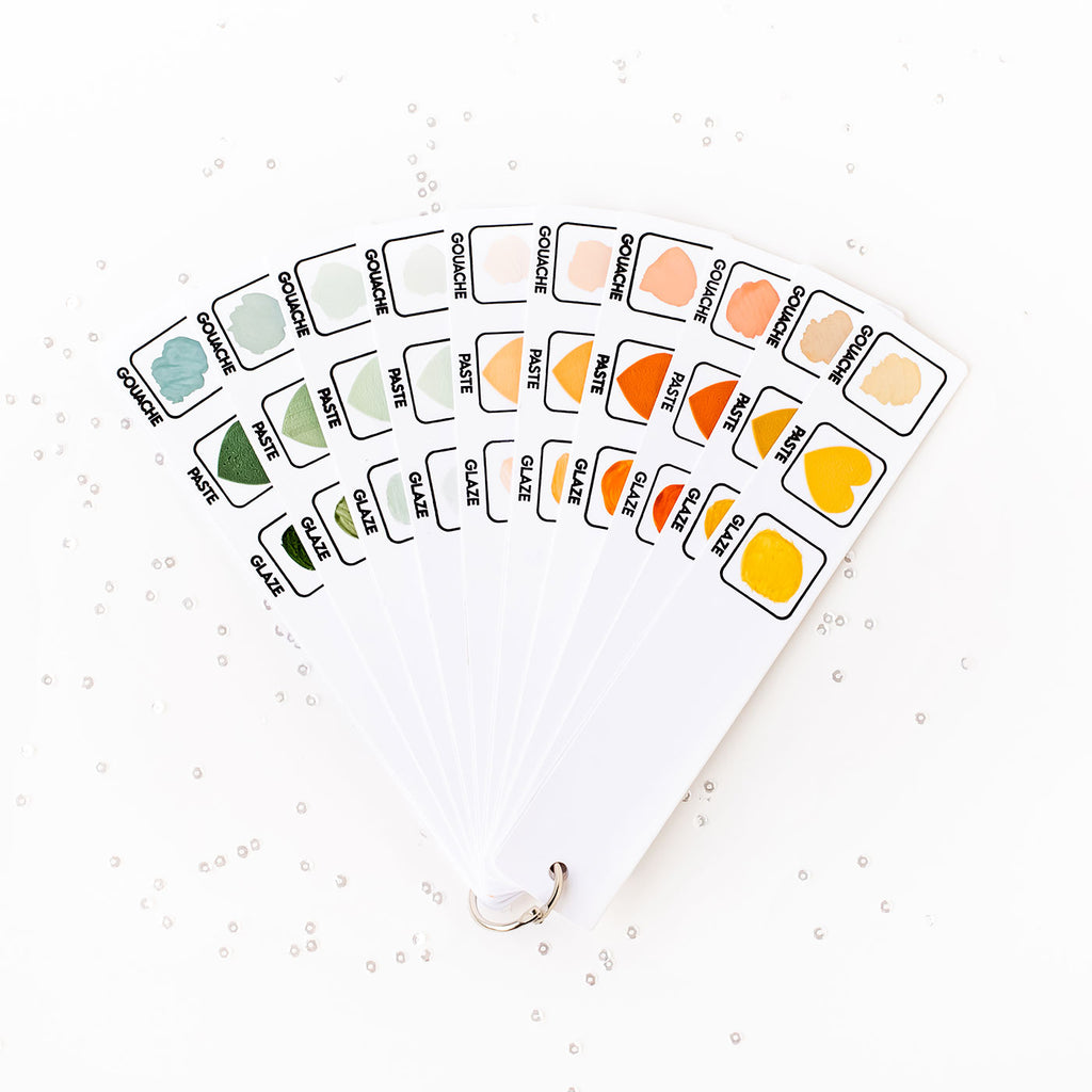 Our Pigment Palette swatching system is a combination of (growing) products to help you swatch, organize and color your heart out! This main stamp, comes with both pre-arranged cubes, as well as standalone squares and swatches. Along with versatile labels and book covers, we hope it will help you build a visual cue that becomes your go-to time and time again!